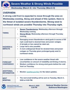 BERKELEY COUNTY, W.Va. — The Berkeley County Office of Emergency Management is warning residents of a dangerous wind event that could hit the Eastern Panhandle mid week.