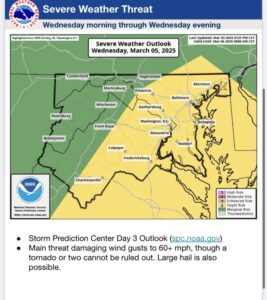 On Thursday, March 6, 2025, damaging wind gusts of up to 50-60 mph could hit the region.
